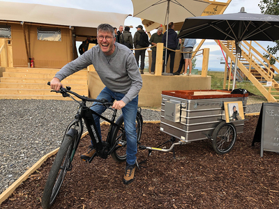 De volgende leuke ontdekking was de Fiets MEX. Een karretje vol Swarovski Optik met verrekijkers en telescopen kan moeiteloos verplaatst worden door een elektrischie fiets. Natuurkijkers.be zal hiervan uiteraard gebruik maken tijdens komende kleine evenementen.