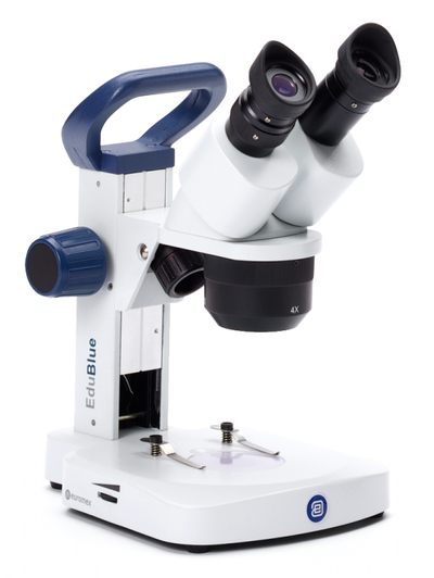De EduBlue microscopen zijn ideaal voor het onderwijs. Ze zijn leverbaar met twee of drie paar objectieven, voor vergrotingen van 5x tot 80x, en hebben opvallende en doorvallende ledverlichting. De twee parallel optische lichtpaden maken 3D obervatie van kleine insecten, planten, stenen en mineralen mogelijk.