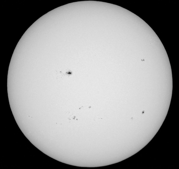 Houd er echter rekening mee dat als u dit doet zonder een geschikte eclipsbrilletje te gebruiken, dit blijvende oogbeschadiging en mogelijk blindheid kan veroorzaken. Serieuze astronomieliefhebbers kunnen hun telescopen gebruiken om een close-up foto van deze zonnevlek te maken zoals ik gedaan heb.