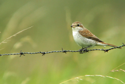 De Grauwe klauwier is een forse, langgerekte zangvogel met zware snavel en lange staart. Het mannetje heeft een asgrijze kop met zwart masker en witte keel.