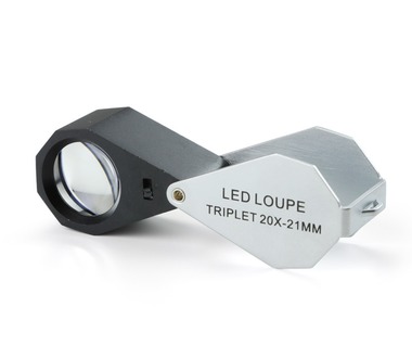 Euromex PB 5033-LED achromatische loep 20x, triplet. Lens Ø 21 mm. Witte LED-verlichting. Beeld zonder vervorming en verpakt in een lederen etui.