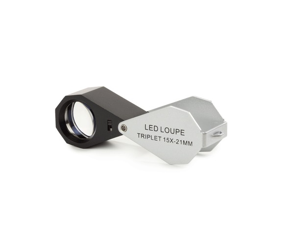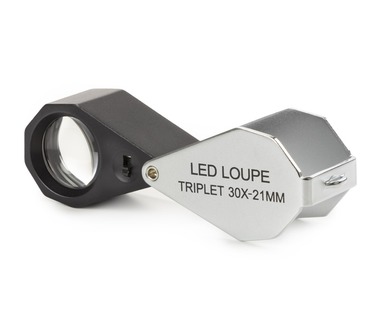 Euromex PB 5035-LED achromatische loep 30x triplet. Lens Ø 21 mm. Witte LED-verlichting. Beeld zonder vervorming en verpakt in een lederen etui.