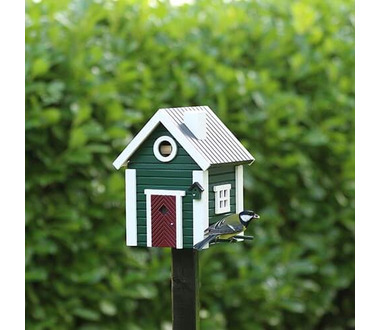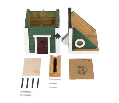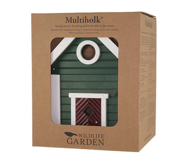 Multiholk Green Cottage is gemaakt van gelijmd gelamineerd hout en geverfd met milieuvriendelijke verf. In de lente en zomer dient het als vogelhuisje en in de winter kan het worden omgebouwd tot voederhuisje.