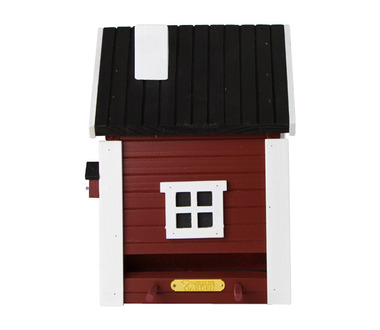 Ruim het huisje op, klap de klink naar beneden en blokkeer de ingang. Zo kunnen de vogels niet binnenkomen en in het voedsel gaan zitten. Verwijder de basis en vul hem met zaden. Plaats zitstokken aan de zijkanten. Vul het met zaden en wacht op de gasten!