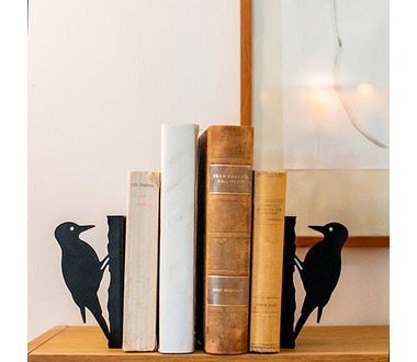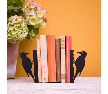 Deze boekensteun versierd met een specht houdt je boeken op hun plaats. De boekensteun is stevig en kan zowel links- als rechtszijdig geplaatst worden. Deze stevige en toch strakke boekensteun is zowel rechts- als linkszijdig te plaatsen. Dit item is voor plaatsing aan de rechterkant. De decoratieve boekensteunen worden per stuk verkocht en zijn gemaakt uit één stuk zwart, gepoedercoat staal. Door hun handige vorm kunnen de boekensteunen netjes gestapeld worden om ze effectief op te bergen als ze niet in gebruik zijn.